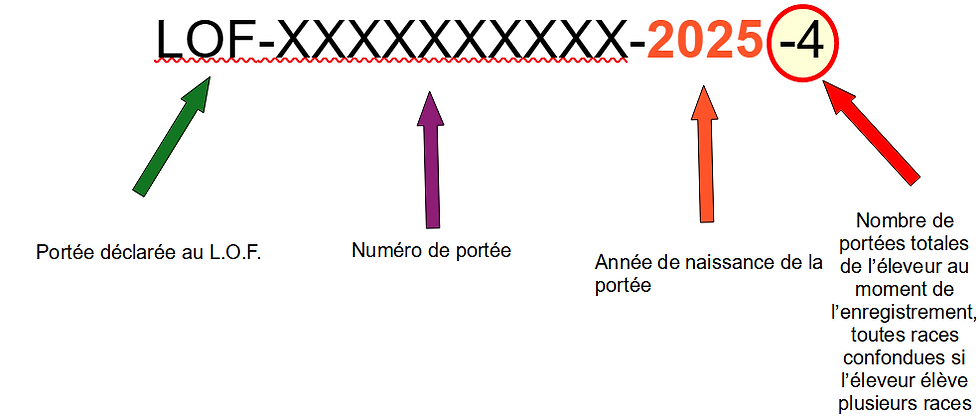 Lorsqu’une portée est déclarée au L.O.F. après sa naissance, la S.C.C. attribue à la portée un numéro :